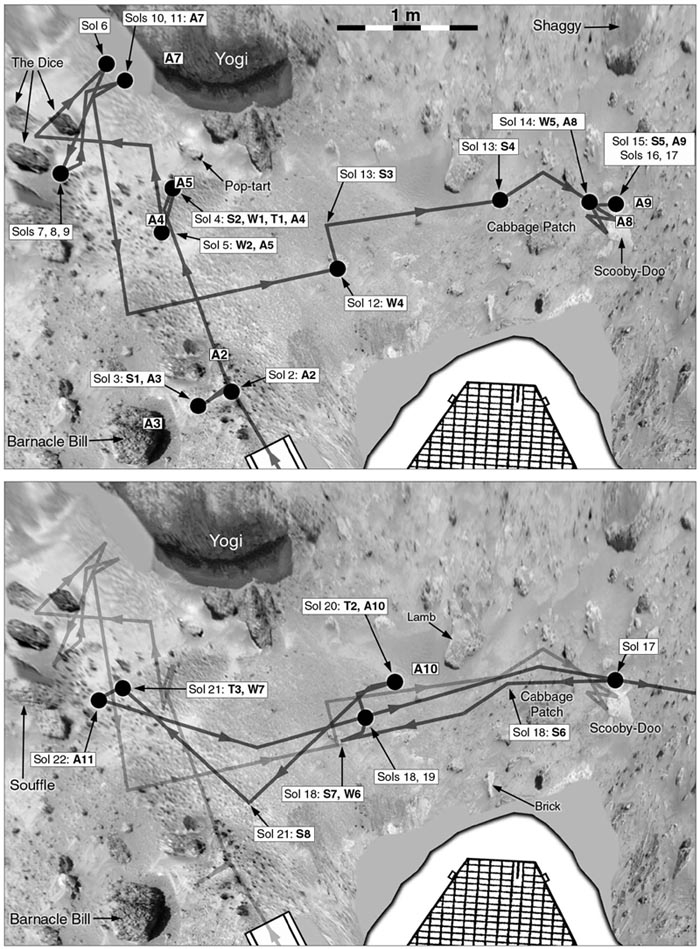 Mars Pathfinder - Sojourner rover activities, sols 2-23.