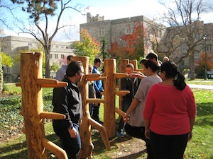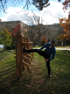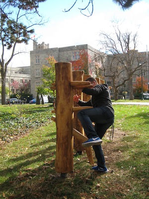The group takes a field trip out to the new Last Stand exhibit to confront the Muk Yan Jong dummies. Deeksha starts us off ready to open up a can of whoopass on these guys. Ben and Tyler go in for roundhouse kicks, while Soheil tries to send that dummy into a flying cartwheel wipeout. Daniella and Troy run distractions as double agents with a hug and game of catch so Cam and Talyor can sneak in with a knee and a foot to the gut. Tristan goes in for a sucker punch, Vanessa rocks a chokehold, Matt shows off his battle scar and pjr takes one for the team.