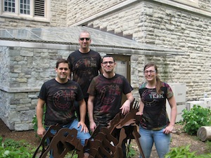 The much anticipated pyrolysis team shirts are ready! Front design inspired by the burning man festival, while each member got to select their own theme song for the back. PJR is SABOTAGE, Amir is Mr. Fahrenheit, Joe is The Ring of Fire and Vanessa is a Pyromaniac!