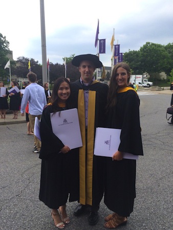 Jen and Taylor go from undergraduates to graduates at the other end of the stage (missing Josh), all three off to grad school in the fall! PJR is loving his outfit.
