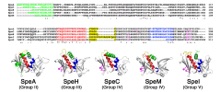 Brouillard, J-N. P., S. Günther, A. K. Varma, I. Gryski, A. K. M. N. Rahman, C. A. Herfst, P. M. Schlievert, D. Y. M. Leung, J. Madrenas, E. J. Sundberg, and J. K. McCormick. 2007. Crystal structure of the streptococcal superantigen SpeI and functional role of a novel loop domain in T cell activation by group V superantigens. The Journal of Molecular Biology. 367:925-34. (LINK)