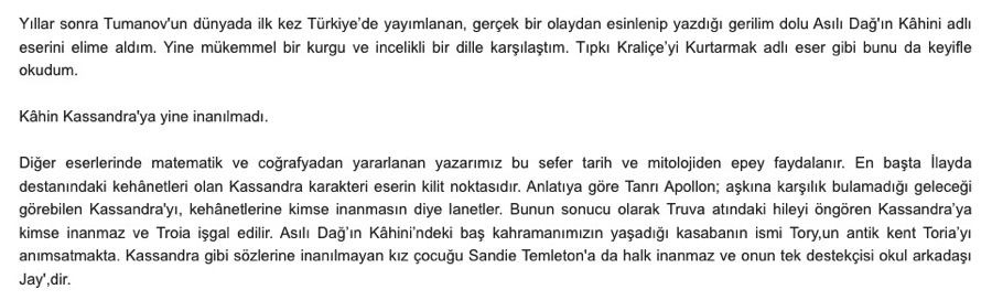 Reviews - Asılı Dağın Kâhini (Kitap Incelemesi)