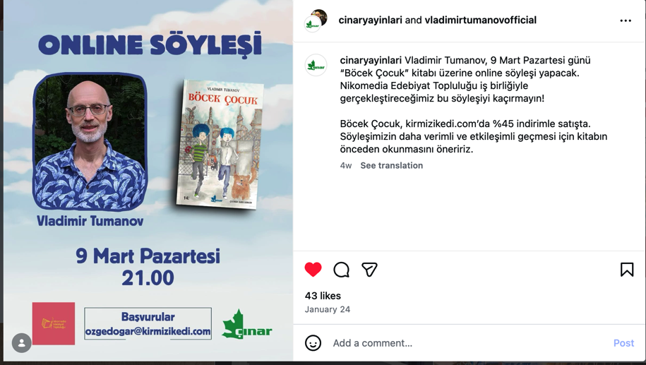 Kraliçeyi Kurtarmak ve Haritada Kaybolmak kitaplarıyla okurların gönlünü fetheden Vladimir Tumanov, ele avuca sığmayan bir çocuğun olağanüstü öyküsünü anlatıyor Böcek Çocuk’ta.